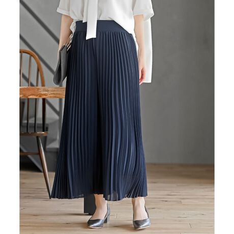 プリーツシフォンが動くたびに華やかに揺れるガウチョパンツ。
