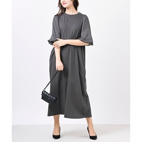 シンプルでいて存在感のあるふんわり袖のワンピース。