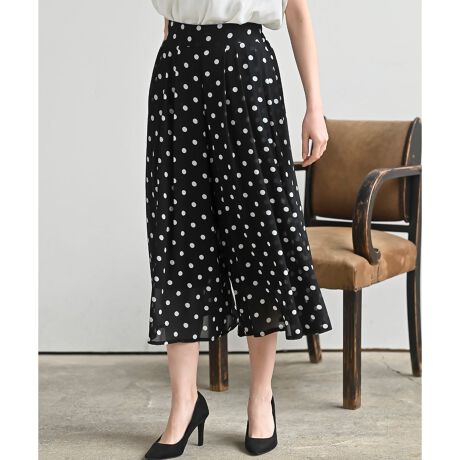 ふんわり軽やかなシフォン素材のスカート見えのガウチョパンツ。