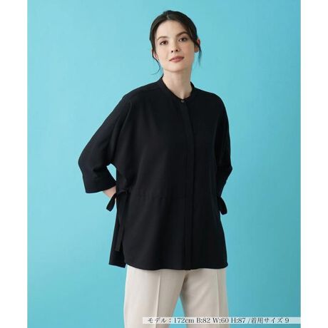 しなやかな風合いのシフォン生地を使用し、軽やかなシルエットでデザインしたバンドカラーブラウス。ウエスト周りに施されたドローストリングによりシルエットの調整が可能です。ベーシックなパンツですっきりとまとめるのはもちろん、フェミニンなフレアスカートと合わせれば、さりげなく大人のエレガンスが薫るコーディネートに。デイリーからオフィスカジュアルまで、これからの季節の多彩なシーンをリュクスに彩ってくれる一枚です。フロントは比翼ボタンにより開閉が可能。------------------------------------初夏 ありなしなしやや薄手ウォッシャブル(手洗い可)-------------------------------------※商品の色味は、撮影場所や光のあたり具合、お客様のお使いの機器により色味が違って見える場合がございます。予めご了承ください。 ※定価(税込)は、2024年6月28日のセール開始前の店舗における販売価格です。