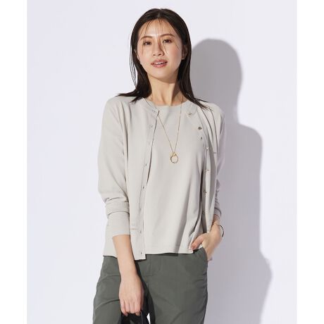 袖口、裾部分に編み柄を入れた、清涼感のあるクルーネックカーディガン。J.PRESSロゴ入りのメタル釦が醸し出すトラッド感が、全体を引き締めるデザインポイントです。コーディネートのアクセントとして効かせたり、同素材のニットと合わせてクラシカルなアンサンブルとしても着こなせます。さらりとした素材感で真夏にも活躍し、お仕事着にも普段着としても素敵にきまる優秀アイテムです。カラーは、ニュアンスカラーのグレージュ(#003)、華やかで目を惹くイエロー(#040)、コーディネートのポイントになるダルブルー(#074)、通勤にも使いやすいネイビー(#075)の4色で展開します。
