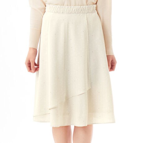アシンメトリー(左右不対象)のオーバースカートのデザインで、