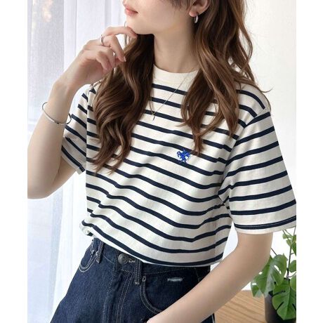 配色刺繍がポイントのBIG半袖Tシャツ。