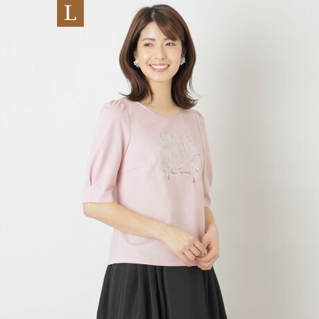 【L】コットンポンチ フラワーモチーフカットソー