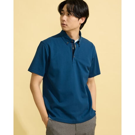 ボタンダウン襟のポロシャツです。ハイゲージ鹿の子生地を使用しています。シルケット加工を施し上品な表情に仕上げました。接触冷感性にも優れ、快適なジャケットスタイルをお楽しみいただけます。