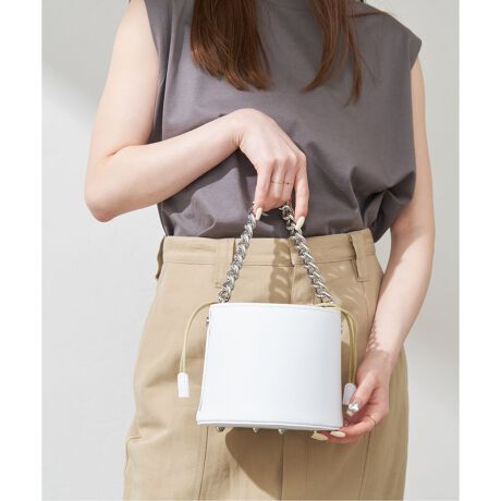コーデを高見えさせてくれるレザーバケツ型バッグ。