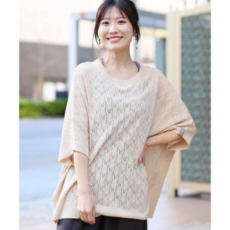レーヨン入りの柔らかく落ち感のあるクロシェニット。