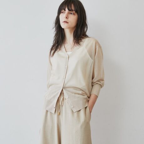 【春セール/薄手/手洗い可】シアーVネックカーディガン