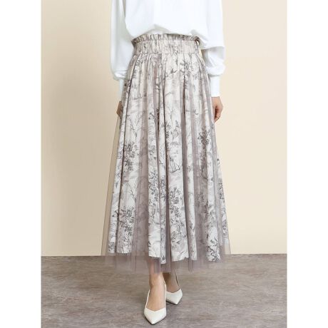 ボタニカル柄にチュールがレイヤードされたフレアスカート。