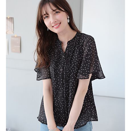 フロント部分にピンタックが施されている、上品な印象のスキッパーブラウス。