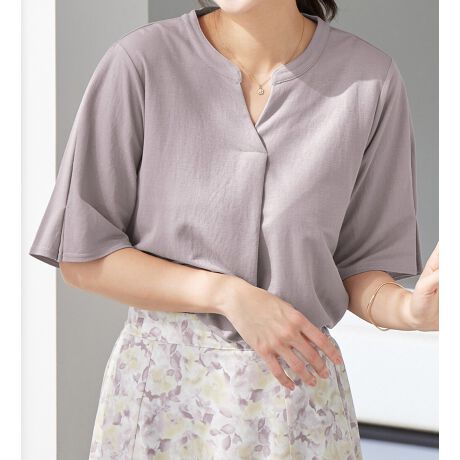大人っぽく装えるスキッパー衿のデザインブラウス。