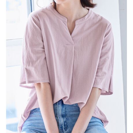 大人っぽく装えるスキッパー衿のデザインブラウス。