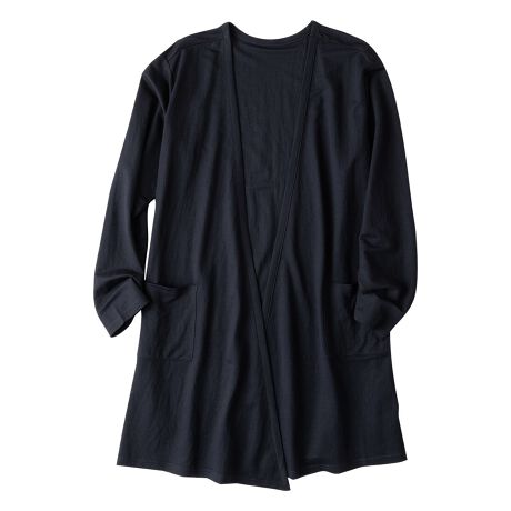 フロントボタンなしのトッパータイプでさっと羽織れます。