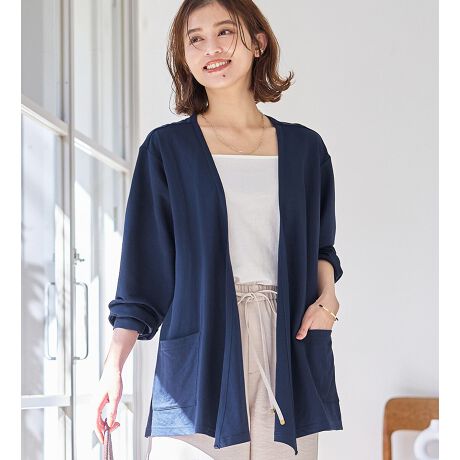 フロントボタンなしのトッパータイプでさっと羽織れます。