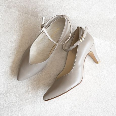 日本製のシンプルなアンクルベルト付きパンプスです。