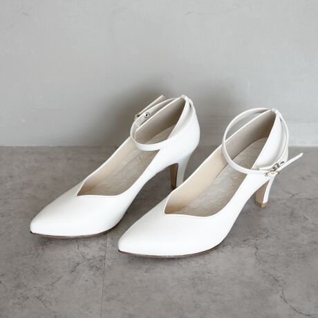 日本製のシンプルなアンクルベルト付きパンプスです。