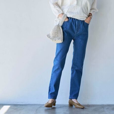 腰まわりに程良いゆとりを持たせたデニムパンツ。
