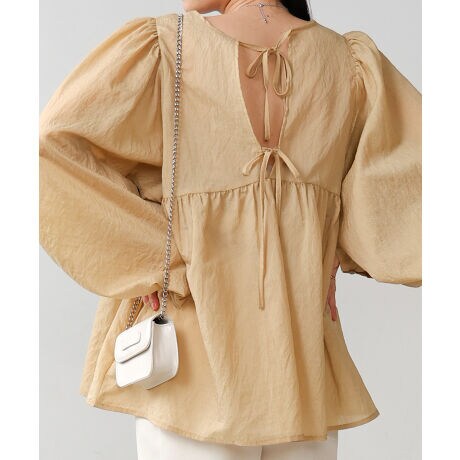 ボリューム感のあるブラウスなので、ボトムスはすっきり落ち感のあるシルエットがオススメです。スラックスでキレイめに、ジーンズでカジュアルにと様々なテイストのコーディネートに馴染みます。タイトスカート合わせでレディな着こなしも◎。タックアウトで着こなしてエアリー感のあるシルエットをお楽しみください。