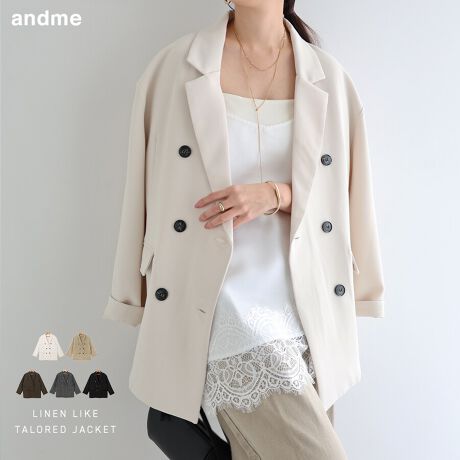 リネンライク ダブル ブレスト テーラード ジャケット