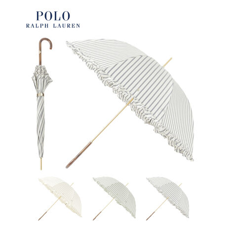 長傘 ストライプフリル ロゴ グラスファイバー骨