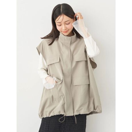 フラップデザインがポイントになったミリタリースタンドカラーベスト。