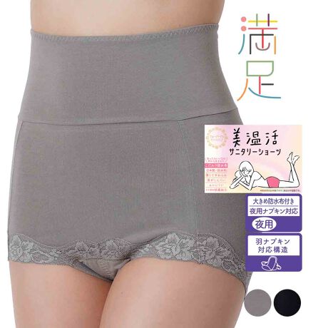 満足 : 美温活 夜用 サニタリーショーツ ボクサータイプ 腹巻付き(37-4526)