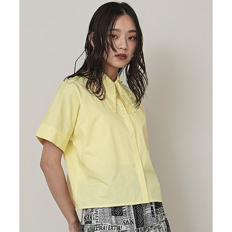 ・パールが施されたビッグカラーがポイントのシャツトップス。・フロントはシンプルですっきり見える比翼仕立て。・ショート丈がトレンドスタイルをメイク。[型番:RDXX0955]