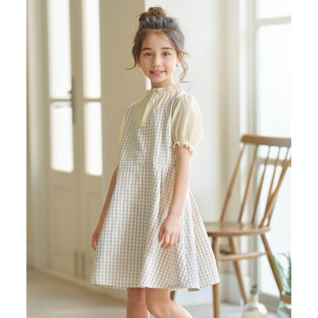 【150-160cm】ギンガムドッキング ワンピース