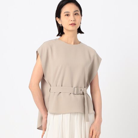 さらにベルトループに通し、ウエストを絞るスタイリングと、ベルトなしのスタイリングが可能です。