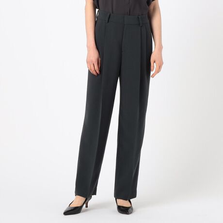 2タックの程よい分量のパンツは、ドレープ性のある素材により、きれいに落ちて脚長効果が期待できる絶妙なシルエットが旬な印象です。