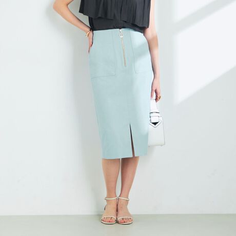 ・ドライタッチのオックス素材を使用したタイトスカート