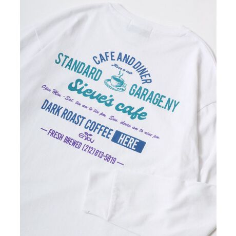 ベーシックなクルーネックに、左胸・袖・背面に施されたプリントがさりげないアクセントとなり、シンプルながらも個性を演出します。