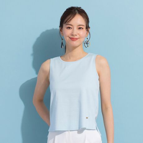 ブラウスやカーディガン・ジャケットのインナーにマストなシンプルで綺麗なタンクトップ。キャミソールと違い肩部分もきちんと巾があるので安心。