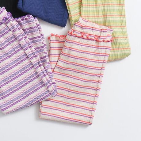 ゆるっとカワイイ!!メロウリブがポイントのパンツ?ワイドなストレートシルエットなので、ゆるっとかわいい!カジュアルコーデが完成します?ちょっぴり大人っぽいブラックに、カジュアルに取り入れやすいブルー。サーモンピンクのボーダーがとってもキュートなオフホワイト♪優しいカラーデザインでPOPでかわいらしいピンクとグリーンはコーデのポイントぴったりです◎+*雰囲気の異なる5色展開なので、無地タイプとボーダー柄の2色買いもおすすめ♪