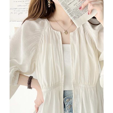フェミニンな雰囲気を放つギャザーブルゾン。