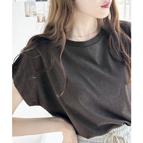 《Javaジャバコラボ》洗練された大人のこなれ感。ヴィンテージ加工綿100%フレンチスリーブTシャツ