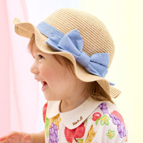 ミキハウス ホットビスケッツの麦わら風リボン付き帽子。