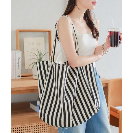 ストライプ柄キャンバスビッグトートバッグ [B1584]