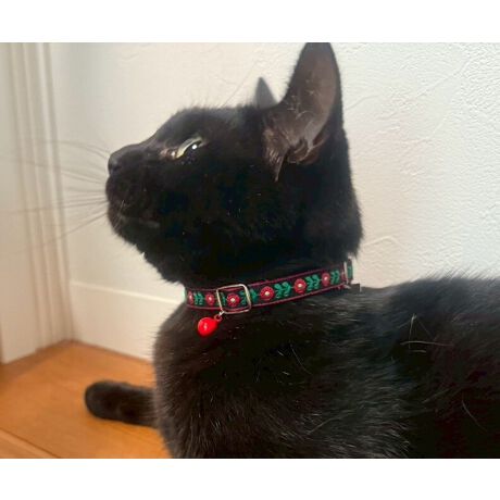 ノスタルジックで温かみのある花柄チロリアンリボンを使用した、可憐で上品な猫用首輪。