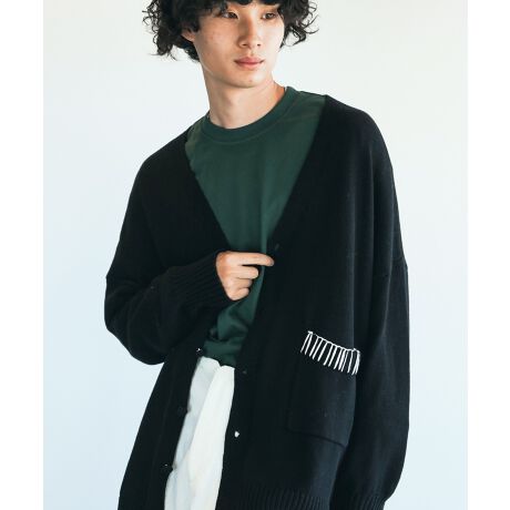 ・ポケットのリブ編みの部分に飾りステッチがかけられていて、シンプルではありつつも他とは違う個性のあるカーディガンです。