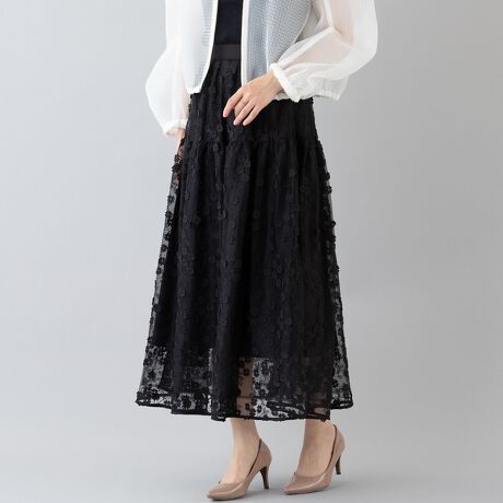 ・立体的なフラワー刺繍と透け感が華やぐオリジナル素材のティアードスカート