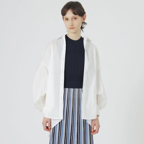 バックスタイルも様になるプリーツコンビのオーバーサイズシャツ