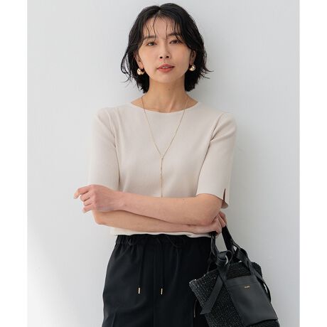 絶妙なサイジングでスッキリ美しい、ディテールに拘った5分袖ニットプルオーバー