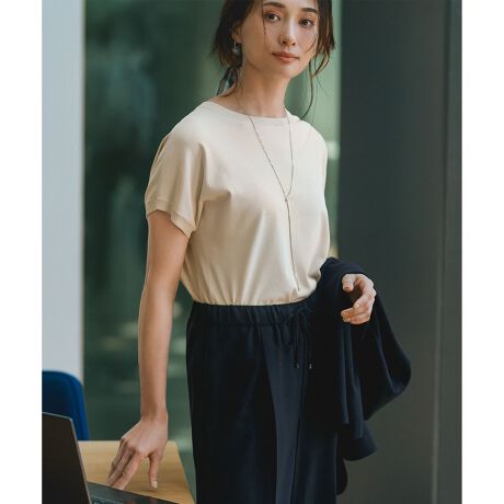 毎日着たくなるストレスフリーな伸縮性が魅力。オンオフ活躍する大人のニットTシャツ