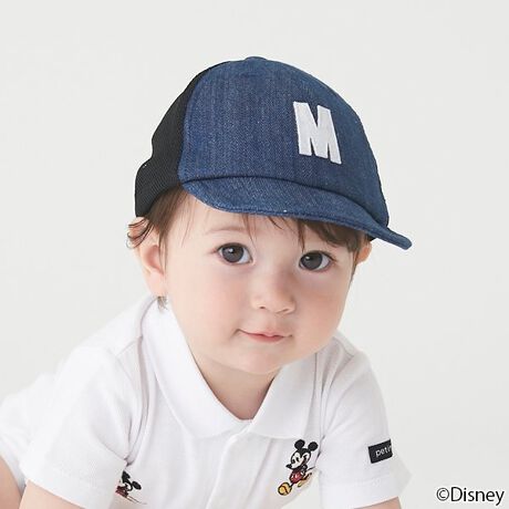 アルファベットのワッペン飾りがアイキャッチなベビーキャップです。