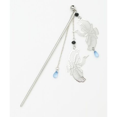 [型番:76JZ3305-2024]つがいで飛び立つ鶴をイメージした透かし模様のかんざし。夫婦仲良く連れ添うことから「夫婦鶴(めおとづる)」ともいわれ、仲良きことの象徴の鳥ともいわれる鶴。縁起のよいモチーフのアクセサリーでお出かけなどいかがでしょうか。