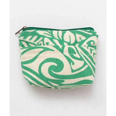 [型番:42VP1153-2024]ポリネシアの伝統トライバル柄をあしらったミニポーチ。丈夫なキャンバス生地に外ポケット付きで実用的。小物収納に便利なサイズで、ナチュラルなデザインがどんなスタイルにも馴染みます。