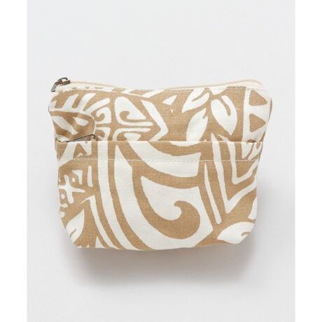 [型番:42VP1153-2024]ポリネシア地方で有名なトライバル柄のミニポーチ。しっかりとしたコットンキャンバスを使用。外側にジッパー付きのポケットがあり機能的で、小物収納に便利です。派手すぎず持ち運びにピッタリ。