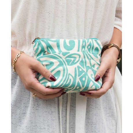 [型番:42VP1153-2024]ポリネシアの伝統トライバル柄をあしらったミニポーチ。丈夫なキャンバス生地に外ポケット付きで実用的。小物収納に便利なサイズで、ナチュラルなデザインがどんなスタイルにも馴染みます。