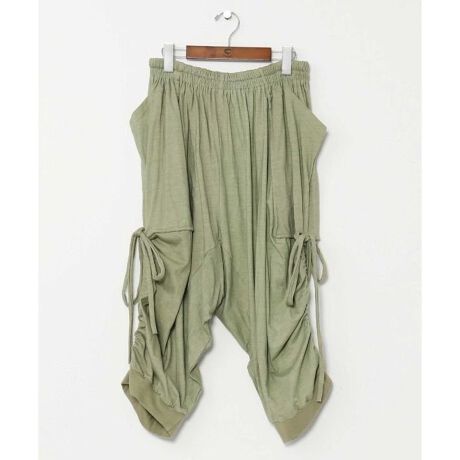 伸縮性のあるカットソー素材で、肌触り・はき心地ともに抜群な変形メンズサルエルパンツ。サイドストリングを絞ってシルエットの変化が楽しめるシンプルながらユニークなデザインは、唯一無二な個性的なスタイリングを実現します。